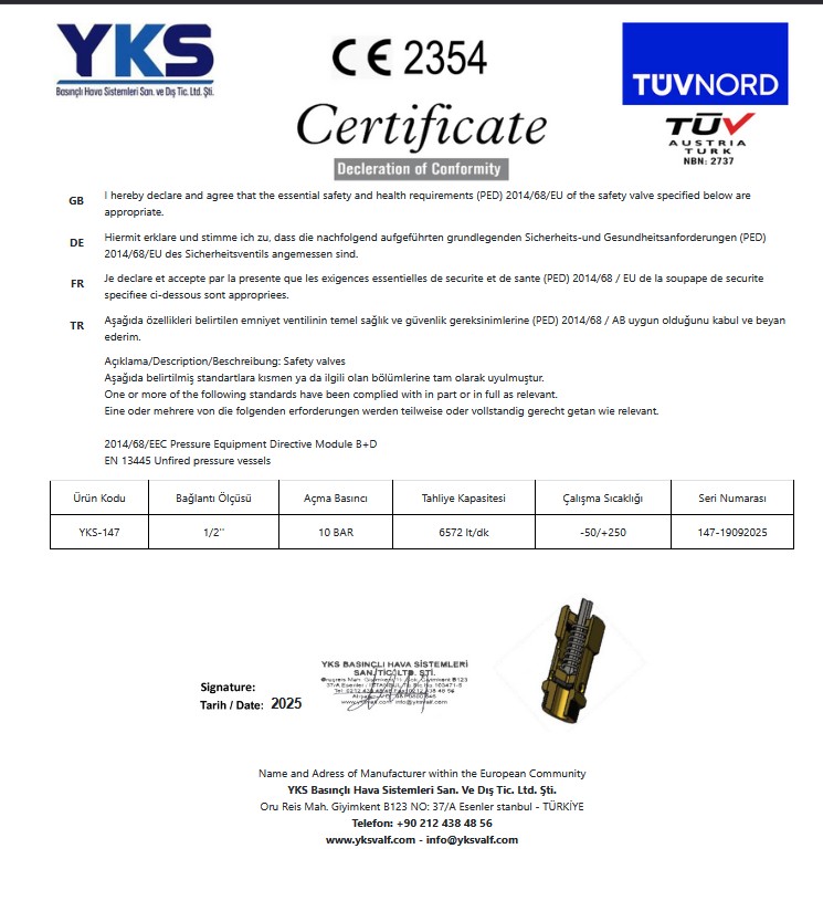 Basınçlı tank ve ekipmanların vazgeçilmez parçası emniyet ventillerini 30 yılı aşkın bilgi ve deneyimimizle Türkiye'de ilk CE standartlarında % 100 yerli üretim yapmaktayız.